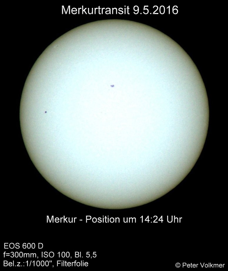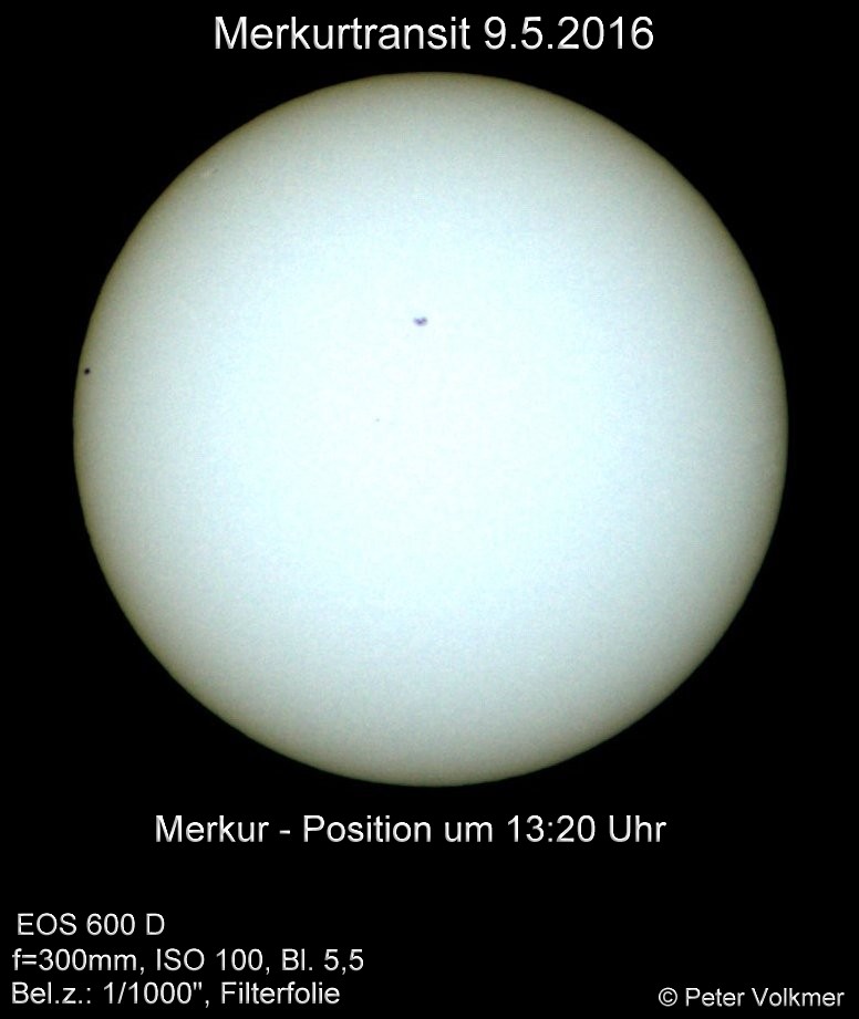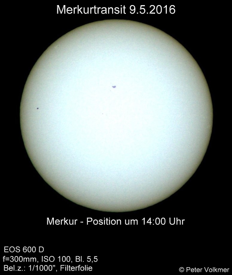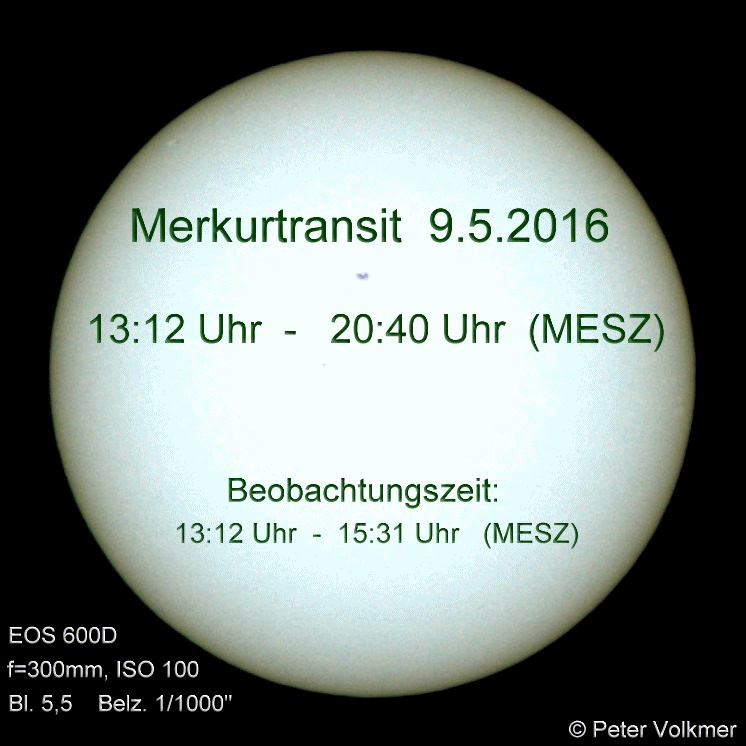 Der Merkurtransit konnte von P.Volkmer leider nur bis 15:31 Uhr fotografisch dokumentiert werden. Hier einige ausgewählte Einzelaufnahmen: