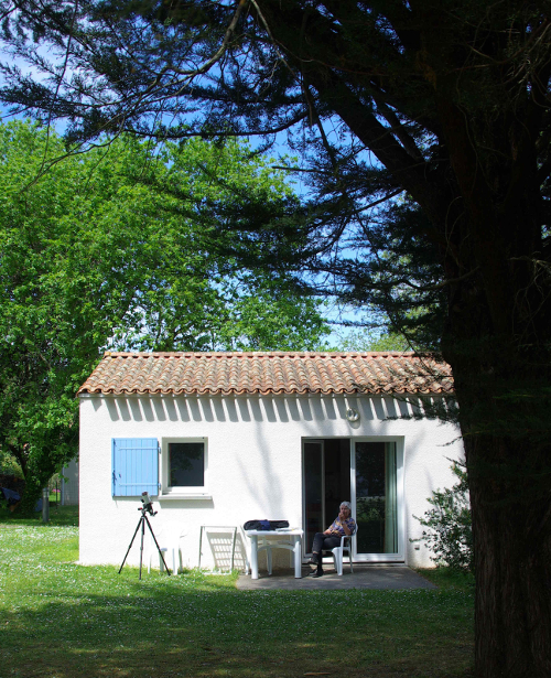 Henning Barnstorf schickte Bilder vom Beginn des Transits, die im Urlaub auf der Ile d' Oleron (mittlere französische Atlantikküste) mit einem Lunt LS60 Sonneteleskop gemacht wurden. Die Bedingungen waren etwas schwierig, weil vorüberziehende Wolken die Sicht behinderten und das verwendete Fotostativ ziemlich schlecht für eine Nachführung war.Hier die idyllische Beobachtungsumgebung in einer Ferienhaussiedlung: